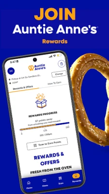 Get insider access to exclusive offers, rewards and stay in the know with all things Auntie Anne's! Plus, easily place mobile orders for pickup or delivery. The Auntie Anne’s Rewards app lets you earn points towards a pretzel reward with every purchase – oh how sweet (or salty) it is!
