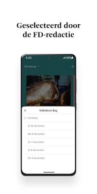 - Van maandag t/m zaterdag een nieuwe editie met een selectie van FD-artikelen (gratis). - Geselecteerd door de FD-redactie - Wekelijks een korte enquête over de app Installeer de app nu en vul de korte vragenlijst in. U heeft direct toegang tot de app. Over Het Financieele Dagblad Het FD is de nieuws- en inspiratiebron die financieel-economische betekenis geeft aan ontwikkelingen in de wereld. Het FD biedt toegang tot het laatste zakelijke nieuws. Met het downloaden van deze app van Het Financieele Dagblad gaat u akkoord met het privacy statement van FD Mediagroep: https://fd.nl/privacy