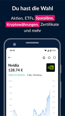 Während unserer Handelszeiten von 7:30 – 23:00 Uhr hast Du Zugriff auf mehr als 1.000.000 Wertpapiere in Form von Aktien, ETFs, ETPs, Fonds, Optionsscheinen und Zertifikaten. 58 echte Kryptowährungen kannst Du sogar rund um die Uhr handeln. Für den Vermögensaufbau mit ETFs bieten wir Dir zusätzlich eine kostenlose Sparplanmöglichkeit. Du kannst außerdem auch komfortabel Aktien- und Kryptosparpläne anlegen.