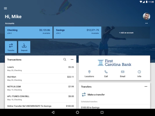 First Carolina Bank is your personal financial advocate that gives you the ability to aggregate all of your financial accounts, including accounts from other banks and credit unions, into a single view. It’s fast, secure and makes life easier by empowering you with the tools you need to manage your finances.