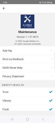 Maintenance implements the user interface to upgrade firmware in the Socket Mobile Bluetooth LE products and perform other maintenance functions.