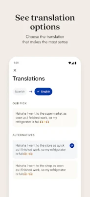 Chat one-on-one or in groups and channels–everyone sees the language they know best. With Native's multi-source translation and AI selection, you get the highest-quality translations for every message. And if you see a translation that doesn't seem right, just tap to view alternate translations.