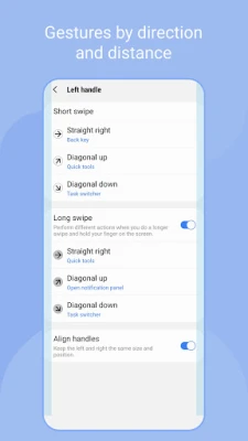When the feature is set, a thin gesture handle is added to the left/right side of the screen.