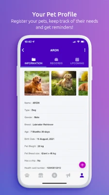 • Register your pets and keep track of their allergies, vaccinations, potty habits, behavior, etc. You can share your pets with other users (joint ownership of pets) and get reminder alerts for their appointments, treatments, and many more.