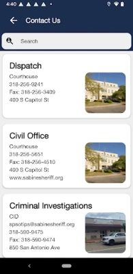 The Sabine Parish Sheriff’s Office mobile application is an interactive app developed to help improve communication with area residents. The Sabine Parish Sheriff App allows residents to connect with the Sabine Parish Sheriff’s Office by reporting crimes, submitting tips, and other interactive features, as well as providing the community the latest public safety news and information.
