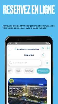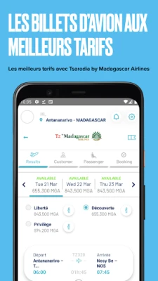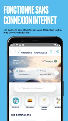 Grâce à elle, vous pouvez réserver vos vols auprès de la compagnie nationale à des tarifs avantageux, Elle est directement connectée en temps réel au système Madagascar AIRLINES. Vous pouvez trouver et réserver une sélection d'hôtels ainsi qu'une variété de restaurants.