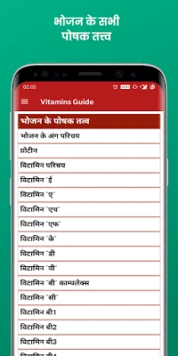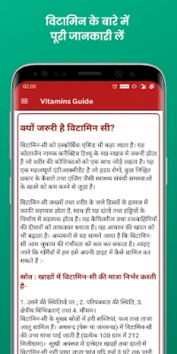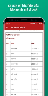 Vitamins Guide in Hindi is a unique app to learn all kind of Vitamins and Minerals and their source and their importance in Hindi.