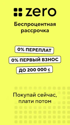 С беспроцентной рассрочкой ZERO вы сможете покупать все, что захотите в широкой сети партнеров: от продуктов до топлива на АЗС, от техники до одежды и обуви, от похода в ресторан до товаров для дома. ZERO — честная рассрочка, без первого взноса и процентов.